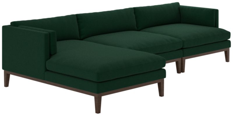 Assembled in Mississippi, modern sectional by Melbourne-based design studio VUUE is made for lounging. Slim arms, tapered legs, deep cushions and a bullnose ash wood base all speak to the sectional's casual style. Upholstered in a linen-blend fabric with a performance finish. Customize the sectional layout to suit your individual space. CB2 exclusive.