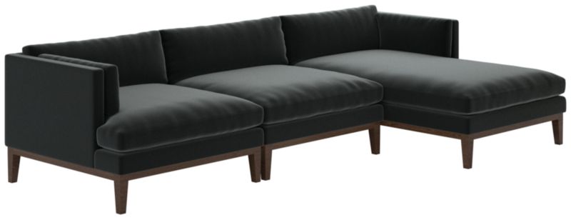 Assembled in Mississippi, modern sectional by Melbourne-based design studio VUUE is made for lounging. Slim arms, tapered legs, deep cushions and a bullnose ash wood base all speak to the sectional's casual style. Upholstered in a linen-blend fabric with a performance finish. Customize the sectional layout to suit your individual space. CB2 exclusive.