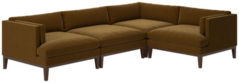Assembled in Mississippi, modern sectional by Melbourne-based design studio VUUE is made for lounging. Slim arms, tapered legs, deep cushions and a bullnose ash wood base all speak to the sectional's casual style. Upholstered in a linen-blend fabric with a performance finish. Customize the sectional layout to suit your individual space. CB2 exclusive.