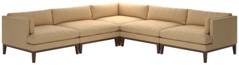 Hand-assembled in Mississippi, modern leather sectional by Melbourne-based design studio VUUE is made for lounging. Slim arms, tapered legs, deep cushions and a bullnose ash wood base all speak to the sectional's casual style. Customize the sectional layout to suit your individual space. CB2 exclusive.
