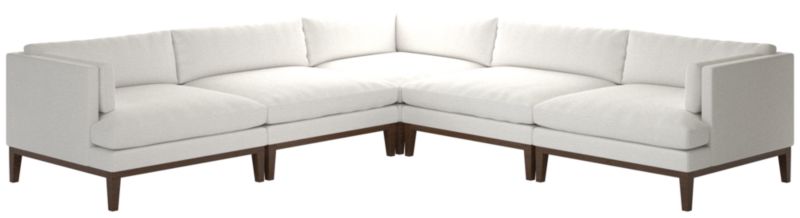Assembled in Mississippi, modern sectional by Melbourne-based design studio VUUE is made for lounging. Slim arms, tapered legs, deep cushions and a bullnose ash wood base all speak to the sectional's casual style. Upholstered in a linen-blend fabric with a performance finish. Customize the sectional layout to suit your individual space. CB2 exclusive.