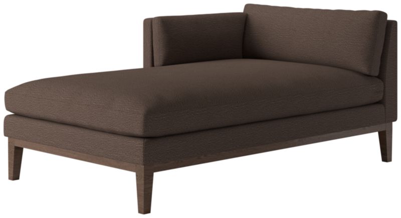 Assembled in Mississippi, modern chaise by Melbourne-based design studio VUUE is made for lounging. A slim arm, tapered legs, deep cushions and a bullnose ash wood base all speak to the chaise's casual style. Upholstered in a linen-blend fabric with a performance finish. Float the chaise on its own or add coordinating Mona sectional pieces to create a spacious sofa. CB2 exclusive.