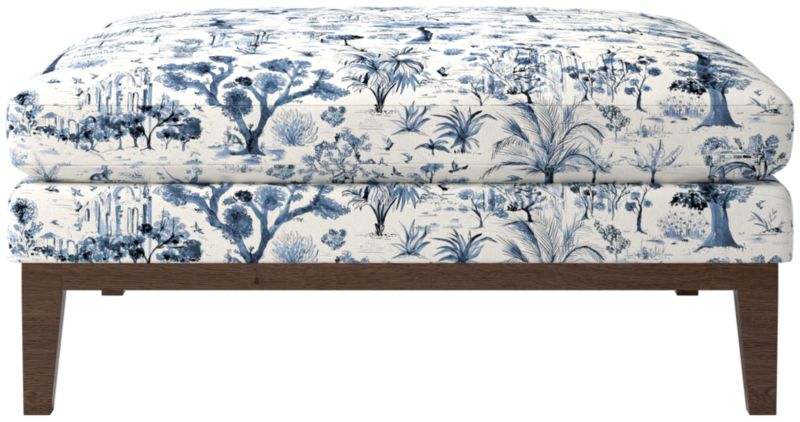 Assembled in Mississippi, modern ottoman by Melbourne-based design studio VUUE is made for lounging. Tapered legs, a deep cushion and a bullnose ash wood base all speak to the ottoman's casual style. Upholstered in a linen-blend fabric with a performance finish. Float the ottoman on its own or add coordinating Mona sectional pieces to create a spacious sofa. CB2 exclusive.
