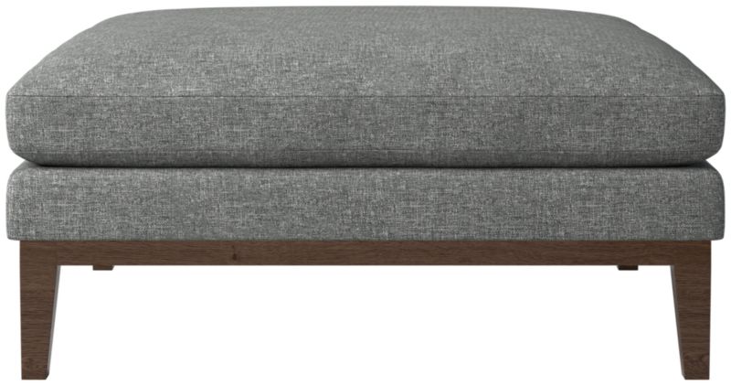Assembled in Mississippi, modern ottoman by Melbourne-based design studio VUUE is made for lounging. Tapered legs, a deep cushion and a bullnose ash wood base all speak to the ottoman's casual style. Upholstered in a linen-blend fabric with a performance finish. Float the ottoman on its own or add coordinating Mona sectional pieces to create a spacious sofa. CB2 exclusive.