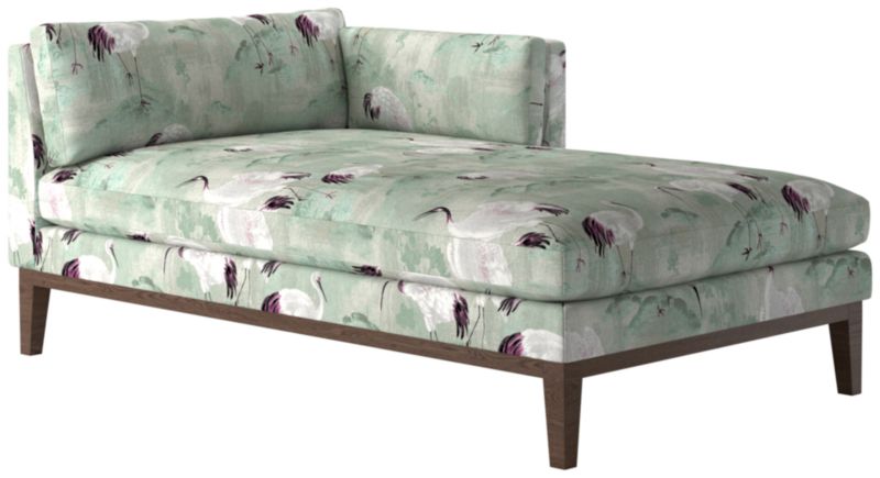 Assembled in Mississippi, modern chaise by Melbourne-based design studio VUUE is made for lounging. A slim arm, tapered legs, deep cushions and a bullnose ash wood base all speak to the chaise's casual style. Upholstered in a linen-blend fabric with a performance finish. Float the chaise on its own or add coordinating Mona sectional pieces to create a spacious sofa. CB2 exclusive.