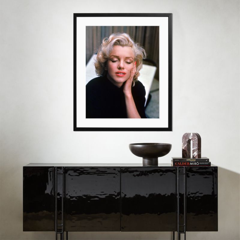 On the patio outside her home, actress Marilyn Monroe, eyes closed, rests her hand on her cheek. Photographed by Alfred Eisenstaedt in Hollywood, California, May 1953, for the Life Picture Collection.