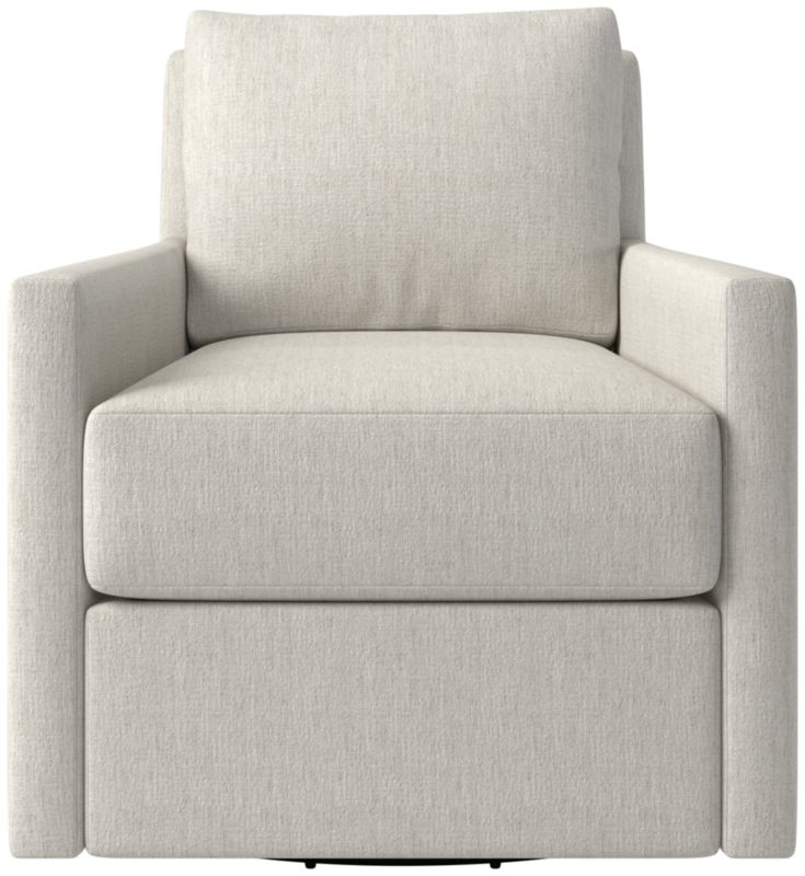 Tailored swivel chair is a modern update on a classic style. Slim track arms and tailored upholstery form a sleek silhouette, while a super-soft detached cushion invites lounging. Available in a variety of custom upholstery options, including fabric, leather and performance. CB2 exclusive.