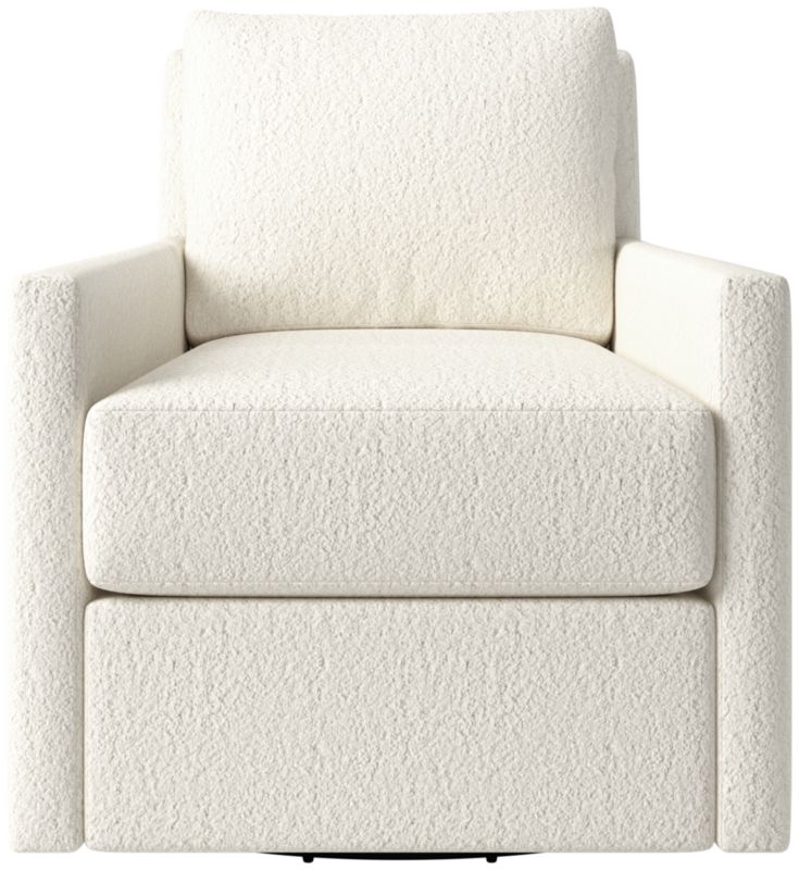 Tailored swivel chair is a modern update on a classic style. Slim track arms and tailored upholstery form a sleek silhouette, while a super-soft detached cushion invites lounging. Available in a variety of custom upholstery options, including fabric, leather and performance. CB2 exclusive.