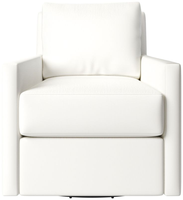 Tailored swivel chair is a modern update on a classic style. Slim track arms and tailored upholstery form a sleek silhouette, while a super-soft detached cushion invites lounging. Available in a variety of custom upholstery options, including fabric, leather and performance. CB2 exclusive.