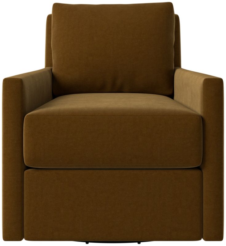 Tailored swivel chair is a modern update on a classic style. Slim track arms and tailored upholstery form a sleek silhouette, while a super-soft detached cushion invites lounging. Available in a variety of custom upholstery options, including fabric, leather and performance. CB2 exclusive.