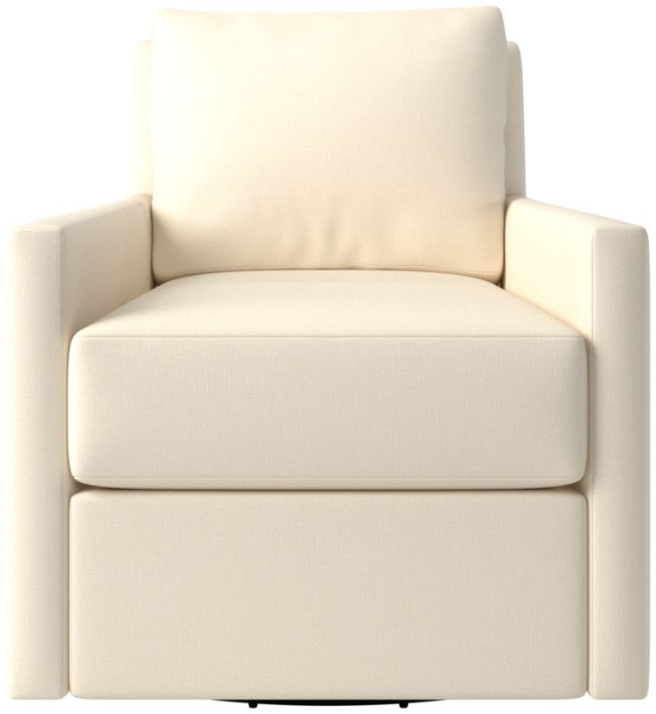 Tailored swivel chair is a modern update on a classic style. Slim track arms and tailored upholstery form a sleek silhouette, while a super-soft detached cushion invites lounging. Available in a variety of custom upholstery options, including fabric, leather and performance. CB2 exclusive.