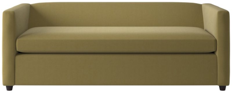 This sleeper version of our best-selling Movie Sofa is a two-in-one. The deep down lounge appeal of the sofa we know and love, but with a spacious queen bed inside. It's off with the uni-cushion, then pull out the 5.25" coil/foam queen mattress in one smooth move.