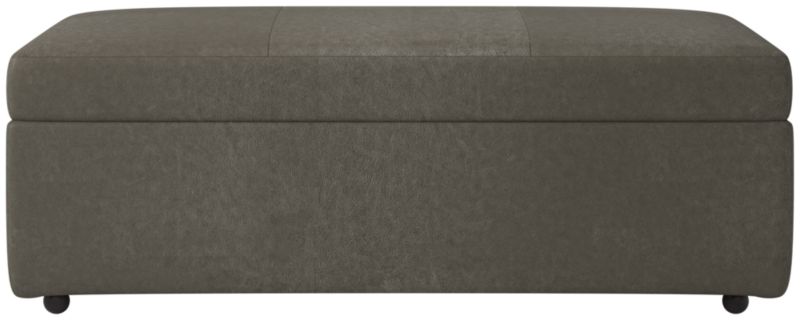 Assembled in North Carolina, leather storage ottoman is the perfect trailer to our Movie sleeper sofa. The ottoman glides smoothly from room to room on casters. CB2 exclusive.