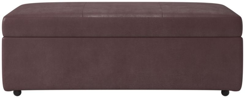 Assembled in North Carolina, leather storage ottoman is the perfect trailer to our Movie sleeper sofa. The ottoman glides smoothly from room to room on casters. CB2 exclusive.