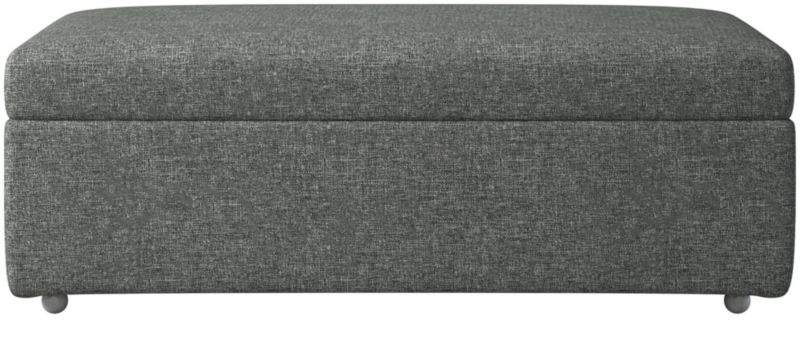 The perfect trailer to our movie sleeper sofa. Extra seat/footrest hinges open to stash blankets and bedding for overnight guests. Upholstered storage ottoman glides smooth room to room on four casters.