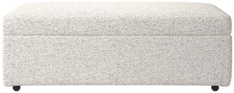 The perfect trailer to our movie sleeper sofa. Extra seat/footrest hinges open to stash blankets and bedding for overnight guests. Upholstered storage ottoman glides smooth room to room on four casters.