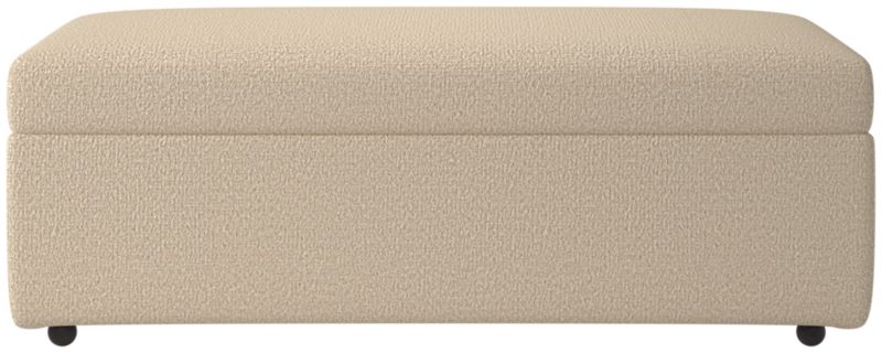 The perfect trailer to our movie sleeper sofa. Extra seat/footrest hinges open to stash blankets and bedding for overnight guests. Upholstered storage ottoman glides smooth room to room on four casters.