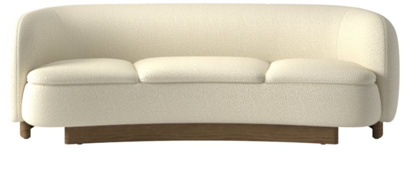 Sofa by Lawson-Fenning has a graceful arching silhouette, mirrored by bent-wood legs that follow its curve. Semi-detached cushions are comfortable and plush, creating an inviting spot to unwind for hours. Fabric feels pleasing to the touch. CB2 exclusive.