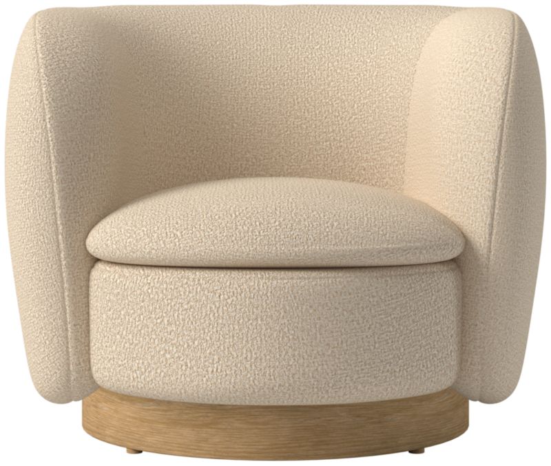 Swivel chair by Los Angeles-based Lawson-Fenning draws on the designers' admiration of California interior design in the 1950s and 1960s. Expertly benchmade, the frame is crafted of wood certified sustainable by the Forest Stewardship Council® (FSC) with a warm walnut plinth base that swivels 360 degrees. CB2 exclusive.
