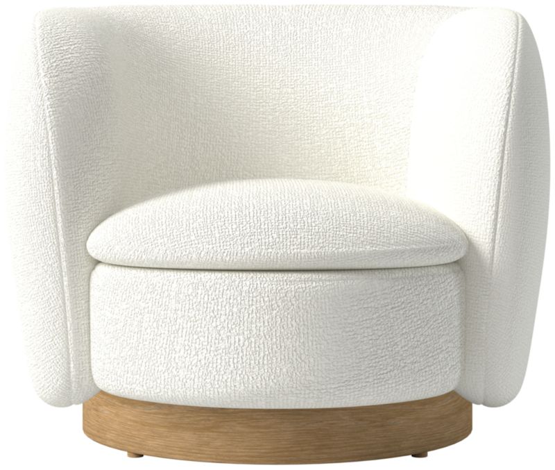 Swivel chair by Los Angeles-based Lawson-Fenning draws on the designers' admiration of California interior design in the 1950s and 1960s. Expertly benchmade, the frame is crafted of wood certified sustainable by the Forest Stewardship Council® (FSC) with a warm walnut plinth base that swivels 360 degrees. CB2 exclusive.