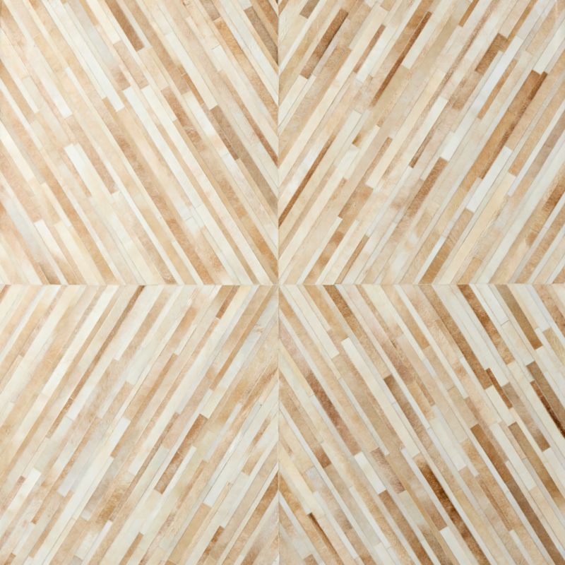 Bryn Namavari imbues this natural hide rug with sleek drama. Sand-colored cowhide leather is pieced by hand and carefully stitched to highlight the beauty of this natural material. Lays soft and is ideal for low-traffic areas. CB2 exclusive.