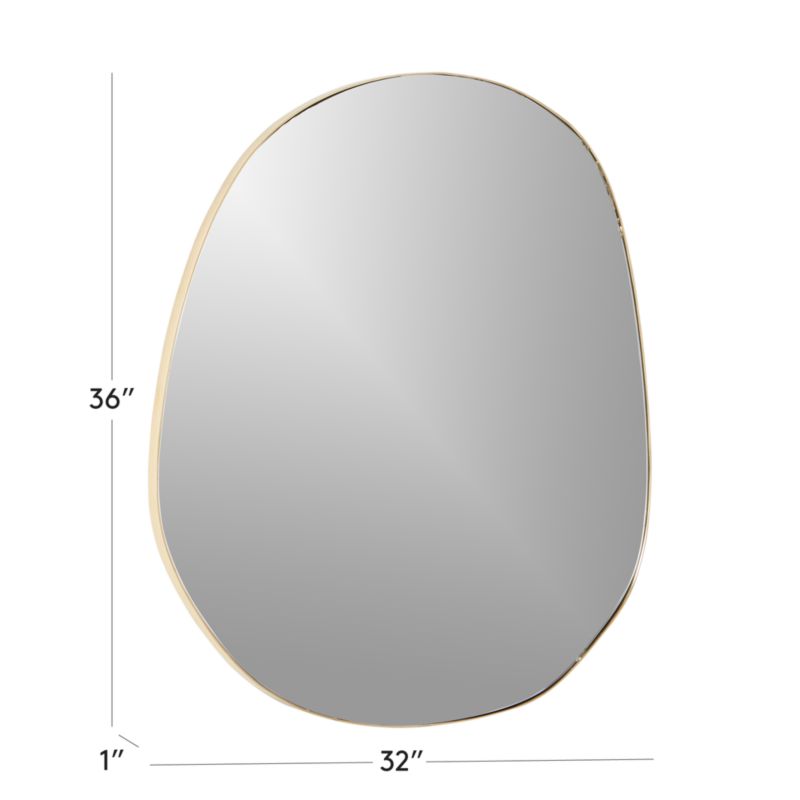 Featuring softly rounded corners handmade in solid polished brass, wall mirror makes a statement with its midcentury-inspired organic shape. Brass is unlacquered, offering a living finish with the patina of a vintage find. CB2 exclusive.