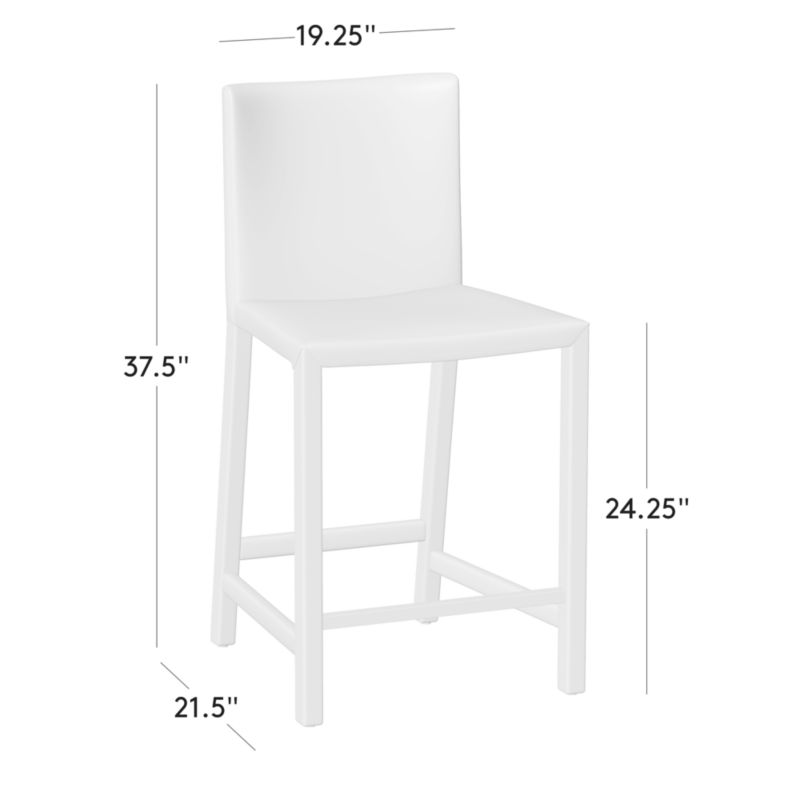 Sleek lines and tailored detailing elevate modern counter stool by Caleb Zipperer. Fully upholstered in luxe cotton-rich velvet in a fresh basil-green hue, stool features crisp mitered corners and stitching for a clean, structured look. CB2 exclusive.