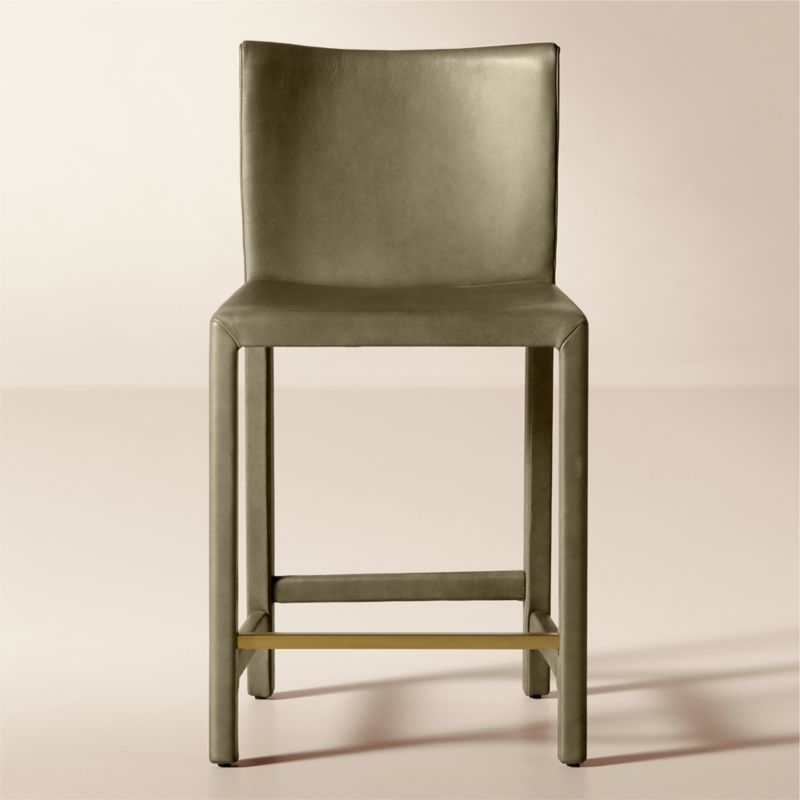Sleek lines and tailored detailing elevate modern counter stool by Caleb Zipperer. Fully upholstered in supple full grain aniline leather, stool features crisp mitered corners and stitching for a clean, structured look. CB2 exclusive.