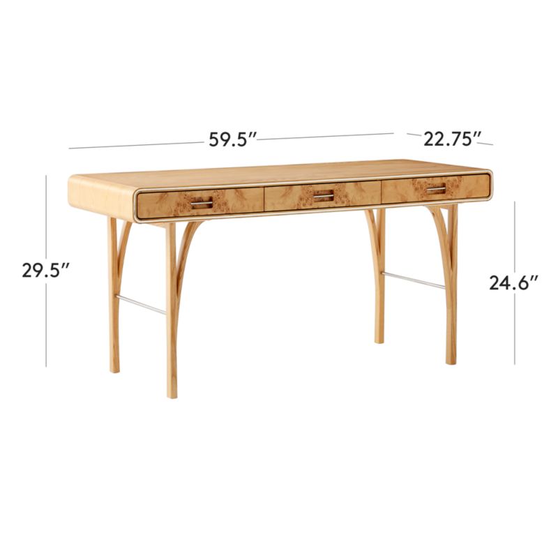 • View Noemie 3-Drawer Burl Wood Office Desk - image 8 of 8