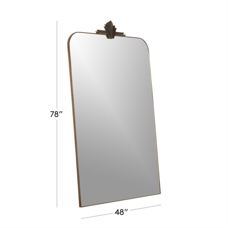 Stunning vintage-inspired mirror manages to be both delicate and grandiose at the same time. Topped with elegant curved corners and crowned with a jeweled adornment, mirror leans against the wall and opens up any room with stunning style. CB2 exclusive.