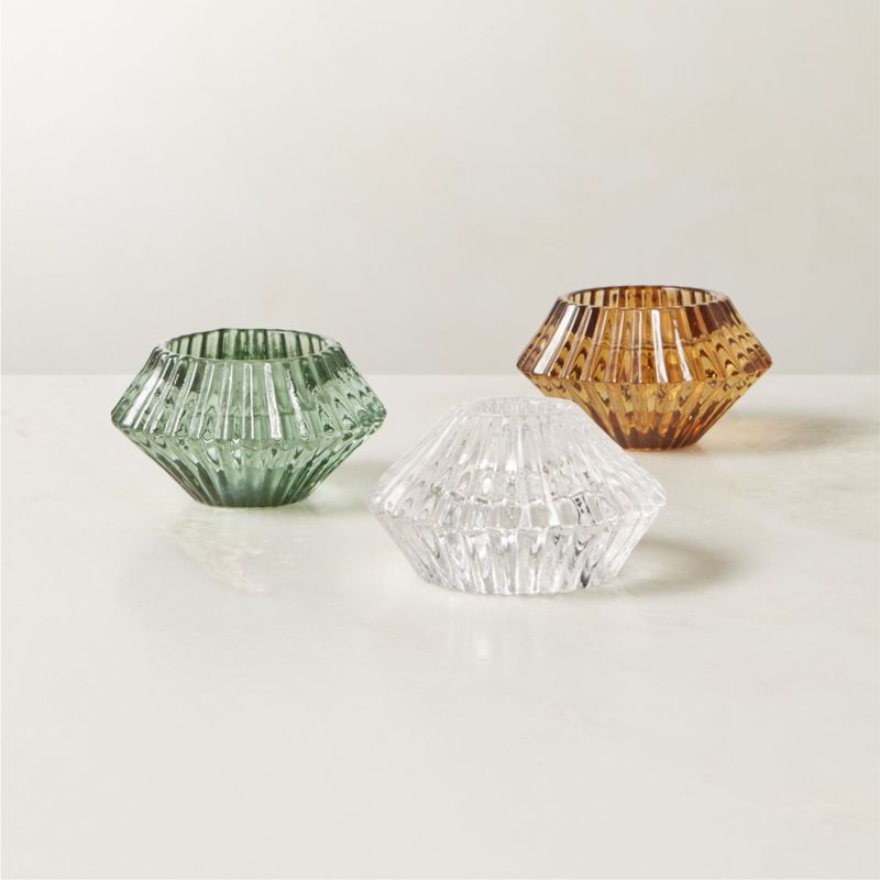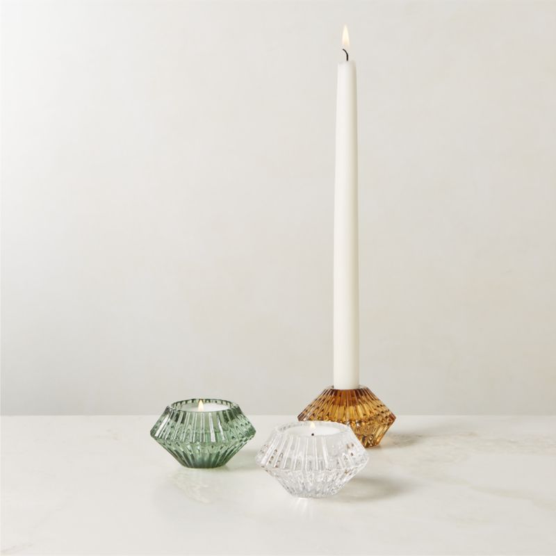 View CartNova Ribbed Amber Glass Reversible Candle Holder