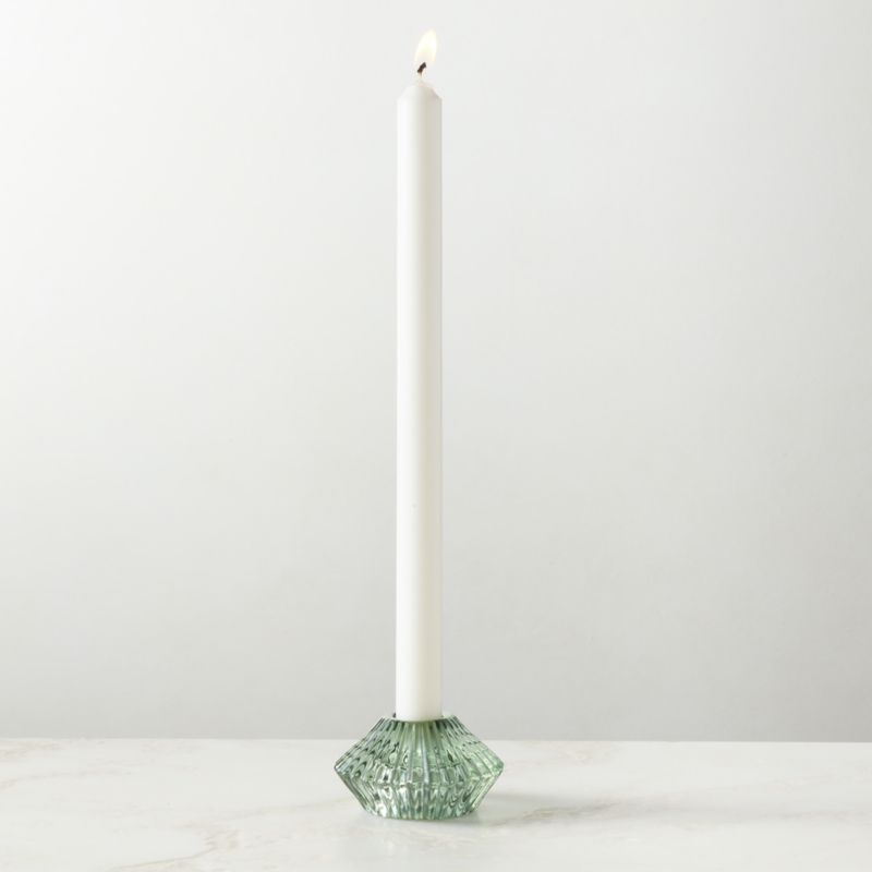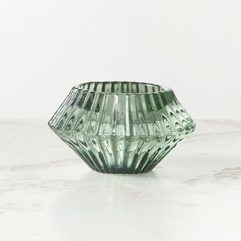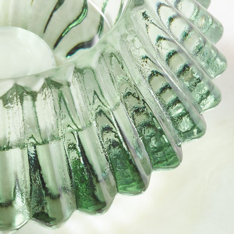 View CartNova Ribbed Green Glass Reversible Candle Holder