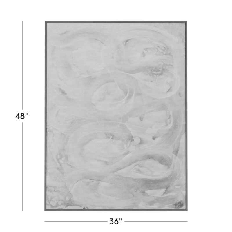 In Ruby's "Nuvole," expressive brushstrokes loop around the composition in a tonal palette of black and white. The work highlights the unpredictability of working with acrylic and ink. "It's a fun process to play with the flow of the colored water, shifting the canvas to different sides and allowing the colors to flow around," the artist explains. Reminiscent of clouds, translucent layers of ink create flowing movement, inviting the eye to wander across the canvas. CB2 exclusive.