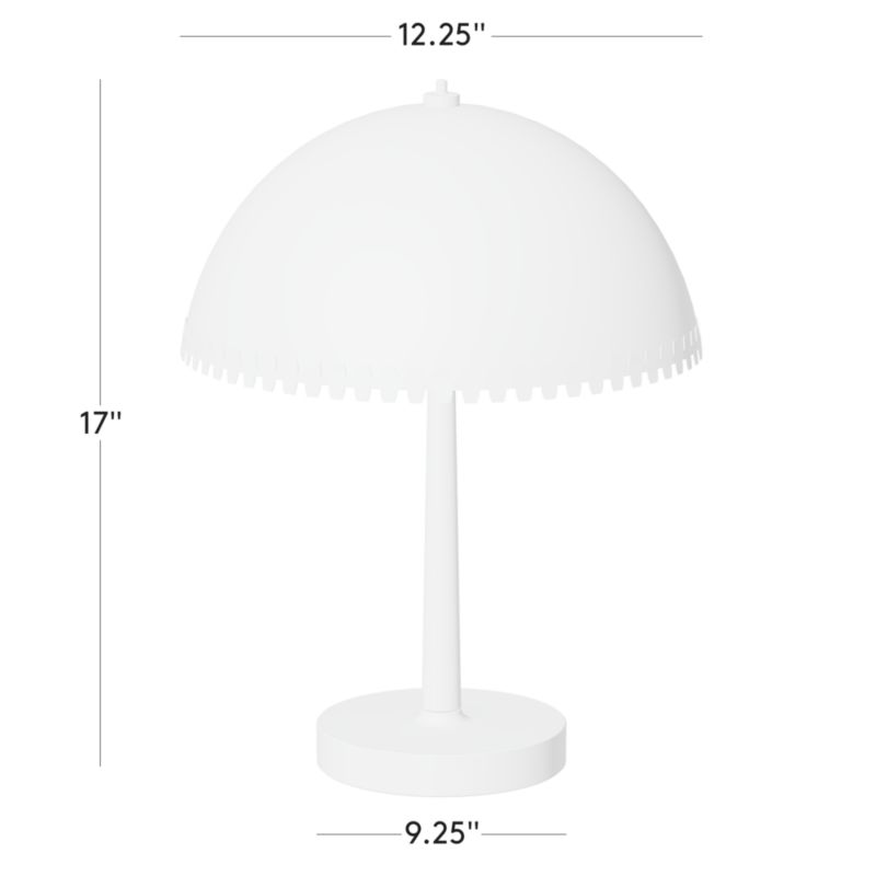 Topped with a hand-carved alabaster shade that glows elegantly when lit, table lamp by David Aguirre makes a grand statement. Metal detail trim completes the tailored look. Heavy cast metal base balances the shade figuratively and literally. As alabaster is a natural stone, each lamp will have its own variations. CB2 exclusive.