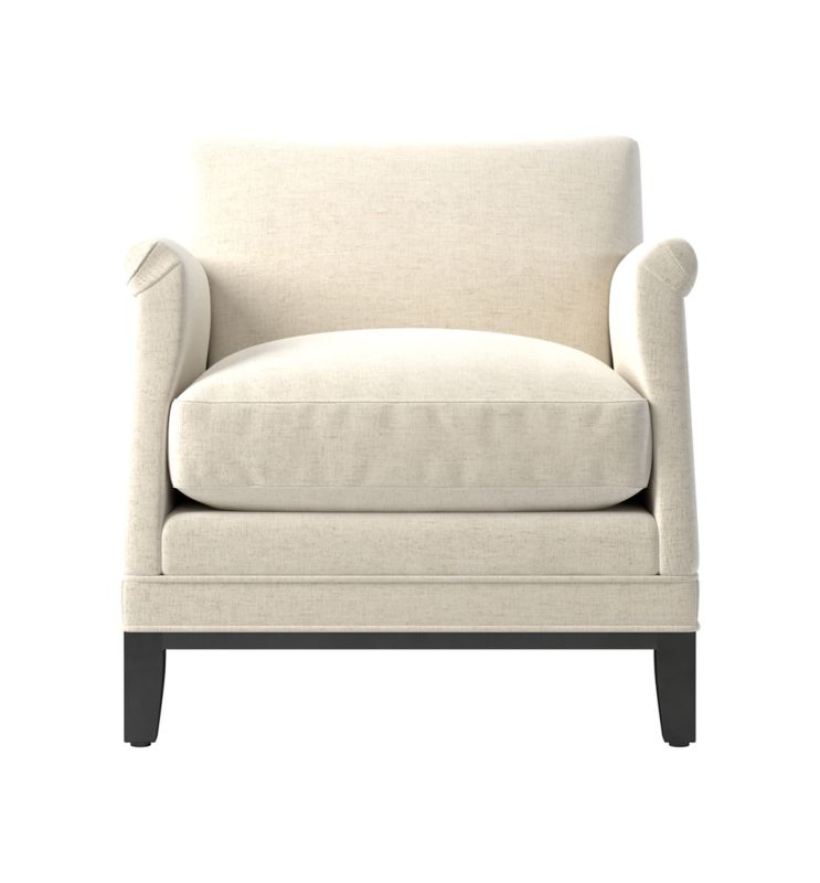 Petite French club chair by Brett Beldock features a tight roll arm and elegant details such as welting and pleats. Upholstered in 100% cotton velvet from a South Carolina mill in operation for more than 180 years, the piece has a luxuriously soft feel. Crafted by hand in North Carolina, its kiln-dried hardwood frame and plush cushion convey a high level of quality. CB2 exclusive.