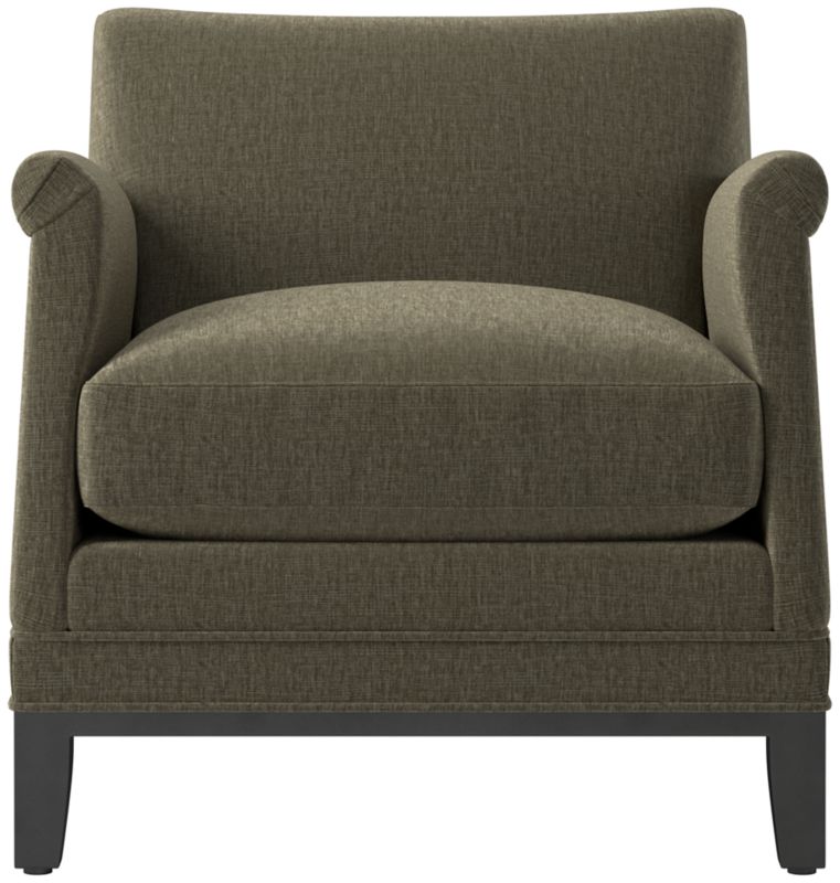 Petite French club chair by Brett Beldock features a tight roll arm and elegant details such as welting and pleats. Upholstered in 100% cotton velvet from a South Carolina mill in operation for more than 180 years, the piece has a luxuriously soft feel. Crafted by hand in North Carolina, its kiln-dried hardwood frame and plush cushion convey a high level of quality. CB2 exclusive.