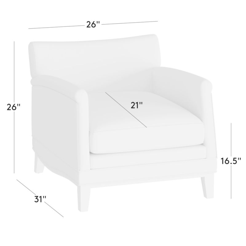 Hand-assembled in North Carolina, French club chair by NYC-based designer Brett Beldock features a tight roll arm and elegant details such as welting and pleats. Upholstered in plush cotton-blend velvet by JB Martin, an award-winning South Carolina textile mill that has been family run for six generations. CB2 exclusive.