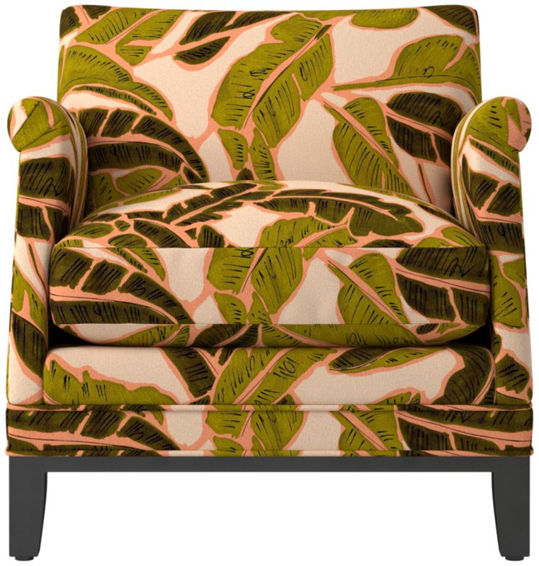Petite French club chair by Brett Beldock features a tight roll arm and elegant details such as welting and pleats. Upholstered in 100% cotton velvet from a South Carolina mill in operation for more than 180 years, the piece has a luxuriously soft feel. Crafted by hand in North Carolina, its kiln-dried hardwood frame and plush cushion convey a high level of quality. CB2 exclusive.