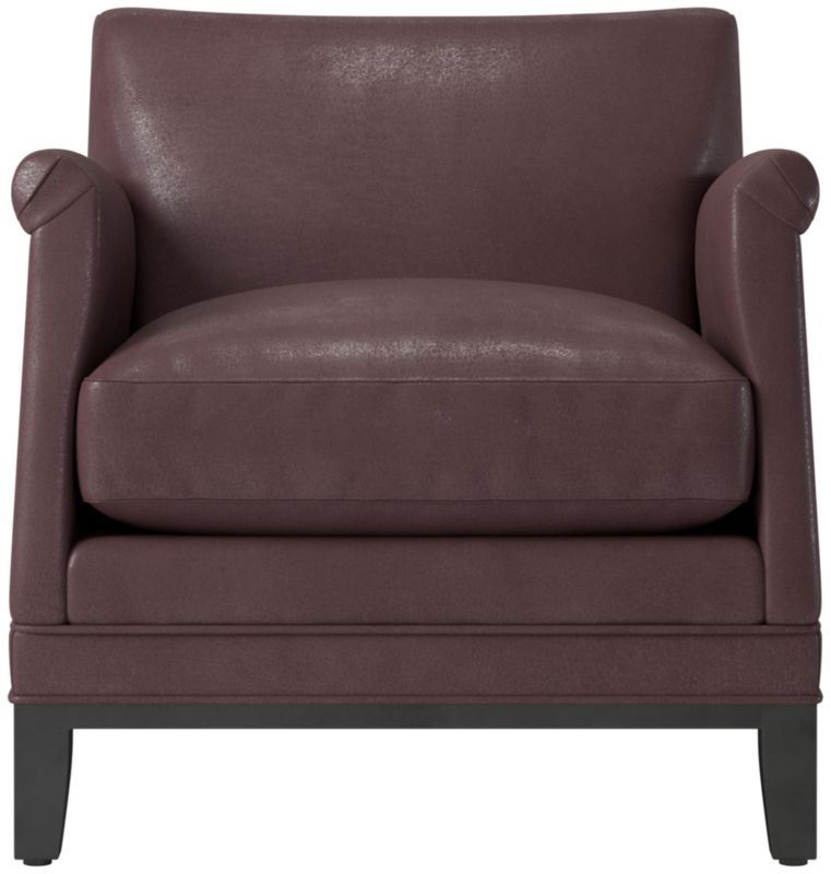 Hand-assembled in North Carolina, leather chair by NYC-based designer brett beldock pays homage to vintage french club chairs. flanked by rolled arms, the chair's clean lines are complemented by plush leather upholstery. cb2 exclusive.