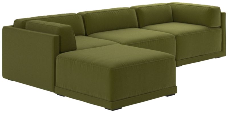Hand-assembled in the United States, sleek modular sectional designed by Barcelona-based Mermelada Estudio invites you in with plush cushions, a low-rise back and performance velvet upholstery. The frame is benchmade using kiln-dried solid wood certified sustainable by the Forest Stewardship Council ® (FSC) with mortise-and-tenon joinery for unmatched strength and durability. Premium high-density foam cushions are wrapped in feathers and down for softness and support. CB2 exclusive.