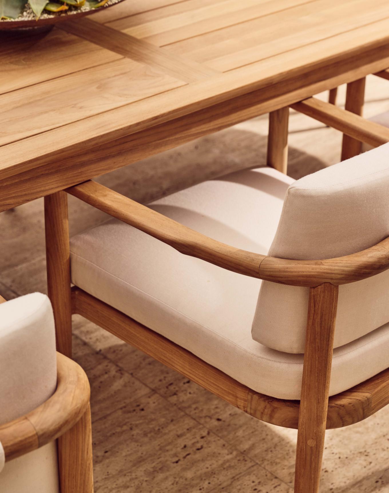 When the weather warms up there is nothing better than hosting dinner around a large outdoor dining table. Finding the right table will elevate your outdoor dining experience, especially when your tablescape can accommodate multiple guests and serving platters. From compact round tables to roomy rectangular options, the right size patio dining table is the one that serves the purpose you have for your space. For larger decks and the effervescent host, an 8 seater outdoor dining table is a smart choice. Pair your table with the right outdoor dining chairs to achieve your desired aesthetic. Outdoor wicker dining chairs with an wooden outdoor dining table cultivate an organically modern look. Meanwhile, a black metal outdoor dining table with aluminum outdoor dining chairs portrays a more urban vibe. Tie the dining set together with statement centerpieces planted in modern outdoor planter bowls and outdoor candles and lanterns to create a moody ambience throughout the night.