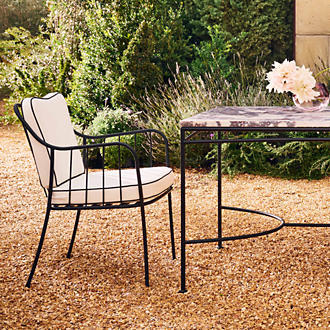 Enjoy your meals with a side of sun and warm breeze at a modern outdoor dining table. Whether you're looking to host an upscale patio party or just take in some fresh air while you sip your morning coffee, an outdoor table creates an inviting spot for enjoying good company and food. Go the traditional route with a long, rectangular patio dining table; made for a crowd, these pieces can seat anywhere from six to ten guests. For an organic feel, choose a natural wood outdoor dining table made from acacia or teak, or make a bold style choice with a stone option. Once you've found your perfect table and coordinating outdoor dining chairs, break in your new dining area by serving friends your latest culinary masterpiece (or just appetizers and drinks). Either way, remember the outdoor lights—chances are your gathering will last long after the sun has set. Short on space? Try an outdoor bistro table. Just big enough to accommodate a pair of chairs, an outdoor café table will fit on even the most diminutive patio or balcony. A few hanging planters overhead add lush greenery without taking up room on the ground.