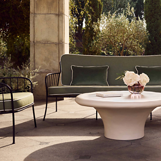 Craving an IG-worthy summer destination? With CB2's collection of modern outdoor patio furniture, look no further than your own porch or backyard. If you're searching for a spot to hang with friends, explore different contemporary outdoor patio furniture styles. Weather-resistant sofas and sectionals are the perfect place to kick back with large crowds, while outdoor lounge furniture like a chaise or accent chair is a comfy place for some solo R&R. Looking for something sized between a sectional and chair? Outdoor loveseats combine cozy support with space-efficient style. Regardless of what modern outdoor patio furniture speaks to you, keep a side table or outdoor ottoman close-by to stash summertime essentials—think drinks, sunscreen and a good book. Then, consider adding soft throw blankets to your backyard patio furniture for maximum comfort.