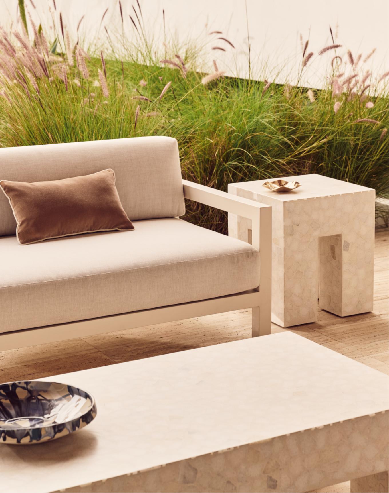 Craving an IG-worthy summer destination? With CB2's collection of modern outdoor patio furniture, look no further than your own porch or backyard. If you're searching for a spot to hang with friends, explore different contemporary outdoor patio furniture styles. Weather-resistant sofas and sectionals are the perfect place to kick back with large crowds, while outdoor lounge furniture like a chaise or accent chair is a comfy place for some solo R&R. Looking for something sized between a sectional and chair? Outdoor loveseats combine cozy support with space-efficient style. Regardless of what modern outdoor patio furniture speaks to you, keep a side table or outdoor ottoman close-by to stash summertime essentials—think drinks, sunscreen and a good book. Then, consider adding soft throw blankets to your backyard patio furniture for maximum comfort.
