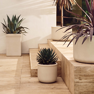 Large outdoor planters are an excellent addition to your patio, deck, balcony, porch or garden. Available in various shapes and materials, large planters are a great outdoor accessory to tie your outdoor lounge furniture together or offer a welcoming entrance to your home. For an urban vibe, go with angular large black outdoor planters that make a bold statement. If you want an airy look, use large white planters or large round planters bursting with greenery and color. Regardless of your desired aesthetic, large outdoor planters are the perfect way to create gorgeous focal points in your outdoor living space you can't take your eyes off.