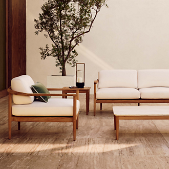 Ready to put that backyard space to good use? We've got all the coolest styles and best outdoor furniture materials, including teak, metal, resin wicker and Sunbrella fabric, to help you create the backyard oasis you've been dreaming of. If you're into all things organic and sustainable (go you!), think teak wood patio furniture. Certified by the Forest Sustainability Council, these wood outdoor furniture pieces let you protect nature while you enjoy it. For a more of-the-moment look, consider metal outdoor furniture. Modern aluminum outdoor furniture is durable and lightweight so you can rearrange your setup with ease. Pair with coordinating outdoor lanterns in black or white for a truly sleek look. Or, stick with a classic—woven outdoor furniture made from resin wicker can carry vintage or tropical looks depending on how you style it. Opt for rattan patio furniture, animal prints and planters full of leafy greens to play up a jungle vibe, or create a quaint look worthy of a tea party with white wicker outdoor furniture and delicate floral decor. Spend your afternoons catching some rays? Get your sunscreen and lemonade ready, then stretch out on our Sunbrella patio furniture. Made from weather-, mold-, mildew- and UV-resistant fabric, this performance outdoor furniture material is ready for anything. No matter which material you choose, take care of your new stuff by covering the pieces with outdoor furniture covers during inclement and cold weather.