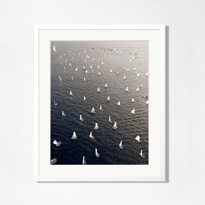 Boats float and drift in the sea near Athens, Greece, as captured by Greek artist Costas Spathis in 2019. Part of our collaboration with Sonic Editions, the image is printed and expertly mounted in a handcrafted wood frame with a white painted finish.