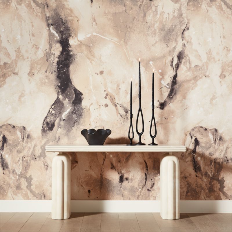 The dramatic sandstone landscapes of Arizona and Utah's Paria Canyon become a large-scale, abstract covering for the wall. Made of parchment certified sustainable by the Forest Stewardship Council® (FSC), wallpaper has excellent lightfastness and dark tonal swaths nestled within rich, nuanced neutral tones. Paste-the-wall application makes installation easy.
