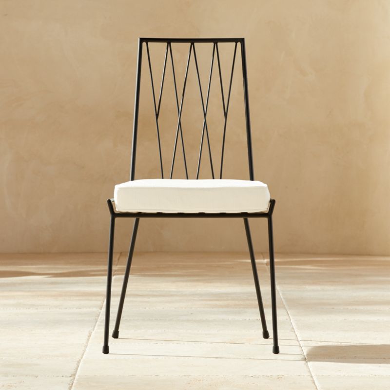 Welling Black Metal Outdoor Dining Armchair with White Cushion Set of 4