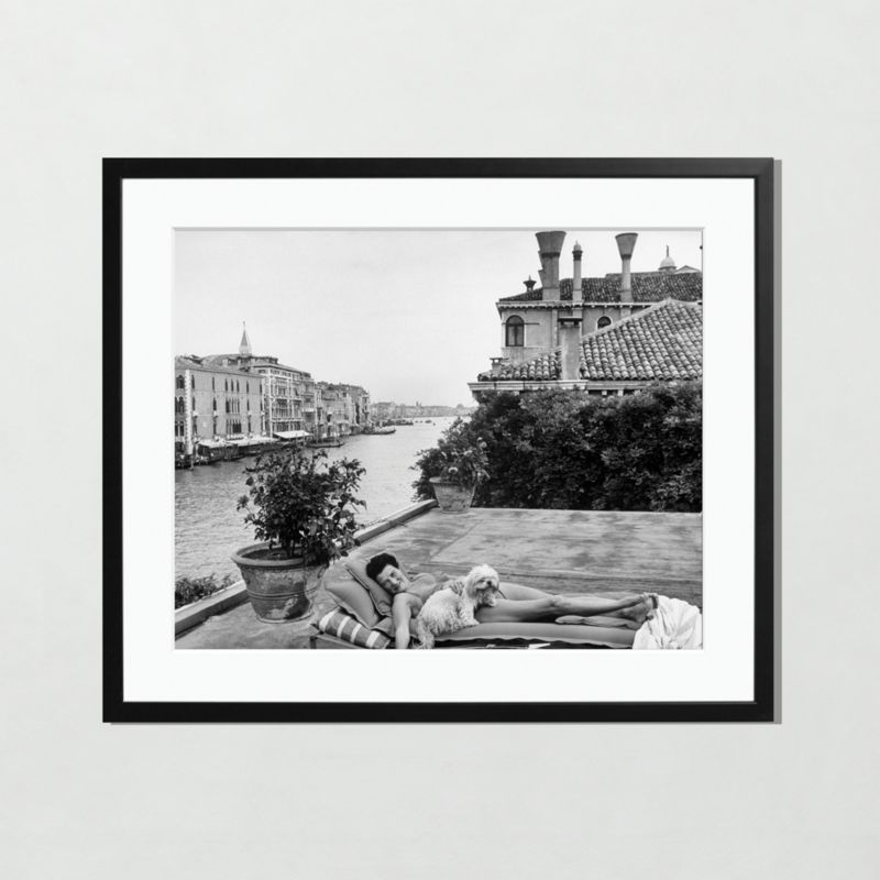 A scene from the Grand Canal, Peggy Guggenheim is photographed by Frank Scherschel, an award-winning staff photographer for Life magazine, on the roof of her house in Venice in 1953. Part of CB2's collaboration with Sonic Editions, each image is printed to order and custom framed by hand for a gallery finish.